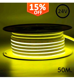 Fleksibel Neon LED 24V 13W/m - 50M Rulle - Specielt til Skilte - 6x12mm - Klip hver 1cm - Citron Gul