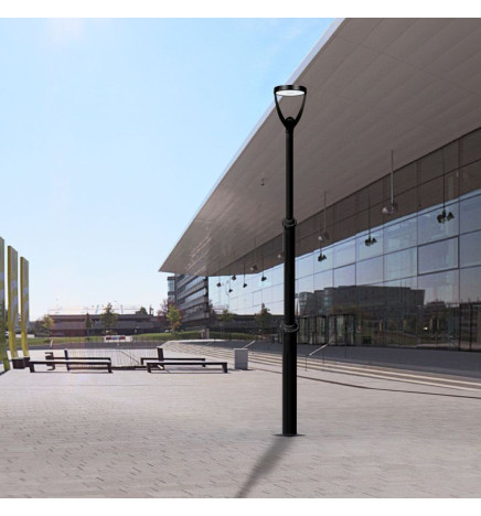 Øjeblikkelig service: Gadelysmast eller lysmast - ALUMINIUM - sortmalet, til offentlig belysning, boligområder, veje, boligområder. Fremstillet - 100 % - i aluminium injektion af høj kvalitet. Aluminiumsmasten er beregnet til særligt fugtige områder med højt saltindhold. Indbagt polyestermaling med høj modstandsdygtighed og holdbarhed til udendørs brug. Let og let at transportere og samle (kan samles af én person).