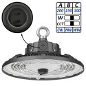 Industriel LED High Bay UFO FRANCE. Oplys dine rum med maksimal effektivitet og alsidighed. Denne LED-armatur tilbyder justerbar effekt (200W / 150W / 100W) og CCT-teknologi (3000K / 4000K / 6500K) for at tilpasse lyset til ethvert miljø. Udstyret med SMD2835 LUMILEDS-chips med 200Lm/W og dæmpbar SOSEN-driver 1-10V, sikrer den høj ydeevne og energibesparelse. Den roterbare linse (60º / 90º) og Zhaga PNP-stik, kompatibel med DALI, ZigBee og bevægelsessensor, giver total fleksibilitet. 5 års garanti for professionel, holdbar og pålidelig belysning.