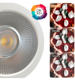 Med en høj farvegengivelsesindeks (CRI+92) sikrer den naturligt, klart og realistisk lys, ideelt til miljøer, der kræver præcis farveopfattelse, såsom butikker, kontorer, hoteller, restauranter eller eksklusive boliger. NO FLICK-teknologi eliminerer irriterende flimmer og sikrer optimal visuel komfort.