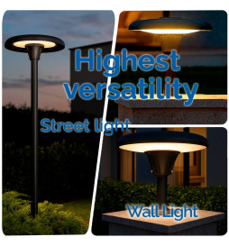 Den cirkulære LED-gadelampe PARK CITY er den ideelle løsning til effektiv og elegant udendørsbelysning i haver, parker, boligområder, pladser og kommercielle områder. Dens moderne og robuste design sikrer en ensartet 360° lysfordeling, hvilket giver tryghed og visuel komfort i enhver omgivelse.