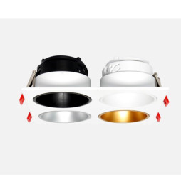 Egenskaber og Tilpasning: Denne vipbare GU10-ramme gør det muligt at tilpasse farven på de indre ringe, som fås i hvid, sort, sølv, guld eller mat sort, hvilket gør det nemt at tilpasse belysningen til din stil og dine behov. Denne fleksibilitet gør den til et fremragende valg både for bolig- og erhvervsprojekter og tilfører et strejf af luksus og eksklusivitet. Dens raffinerede design sikrer en fejlfri og professionel finish uden at gå på kompromis med æstetikken.