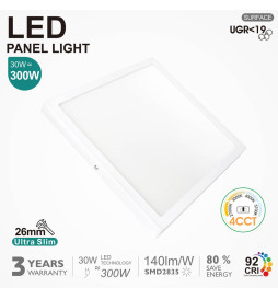 LED Loftlampe Overflade Kvadrat 30W | 4CCT | UGR19 | SMD2835 140Lm/W | CRI92