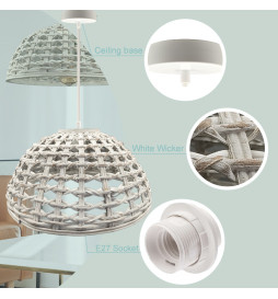 Lampen er lavet af flettet materiale i høj kvalitet med en naturlig finish, der giver den et varmt og hyggeligt look. Ophængskablet er justerbart, så du kan tilpasse lampens højde op til 120 cm.