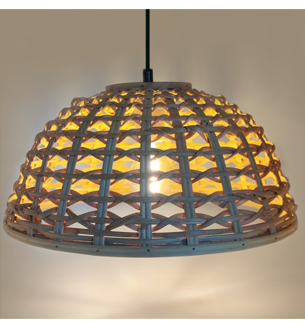 Lampen er lavet af flettet materiale i høj kvalitet med en naturlig finish, der giver den et varmt og hyggeligt look. Ophængskablet er justerbart, så du kan tilpasse lampens højde op til 120 cm.