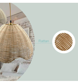 Lampen er lavet af flettet materiale i høj kvalitet med en naturlig finish, der giver den et varmt og hyggeligt look. Ophængskablet er justerbart, så du kan tilpasse lampens højde op til 120 cm.