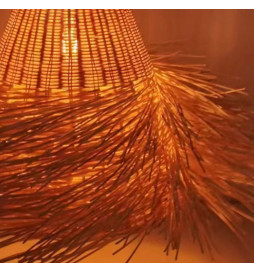 Lampen er lavet af rattan, et naturligt materiale bestående af fine lag af klatrepalmer, typisk fra Asien, som er vævet sammen for at danne en unik og karakteristisk struktur. Denne byggeteknik forbedrer ikke kun dens æstetiske udseende, men giver også enestående holdbarhed.