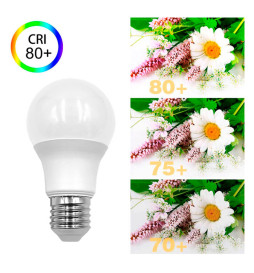 Den medfølgende OSRAM Chip High Brightness 2835 SMD-dioder svarer til lysstyrken på en konventionel pære på omkring 105W. På denne måde opnås en energibesparelse på 80%. Det eksponerede lys fordeles i en vinkel på 180° og har et farvegengivelsesindeks på +80, hvilket indikerer kvaliteten af lyset leveret af vores 12W E27 A60 LED-pære.