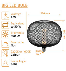 LED-Pære - Moderne metal - 4W E27 - Sort - BIG Ø220mm