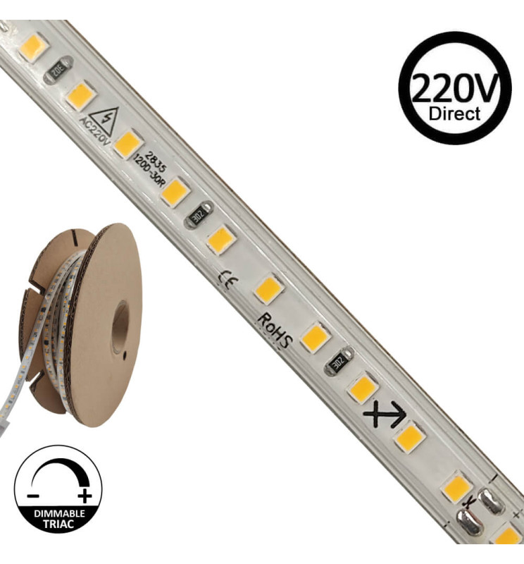 LED-Strip 220V | 120xLED/m | 20m | SMD2835 | 1450Lm/M | 14W/M | IP67 | Skær hver 10cm