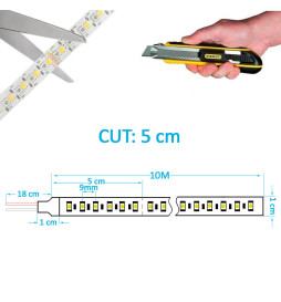 Oplev RGB+CCT LED-strip 24V, 12 mm bred, med dobbelt diodeteknologi: RGB 3535 til dynamiske farveeffekter og CCT 2835 til justering af den hvide farvetemperatur. Med en 10 meter lang rulle kan du nemt belyse store områder. Perfekt til dekorative, kommercielle eller boligprojekter, hvor der ønskes fuld kontrol over lys og farver.