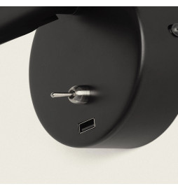 LED Væglampe 2,5W 4000K justerbar i aluminium, ideel som læselampe i soveværelser og hvileområder. Det elegante design integrerer en USB-port til opladning af enheder og en let tilgængelig kontakt, som giver komfort, funktionalitet og stil i ét produkt.