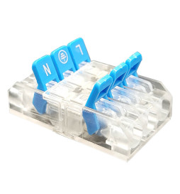 Den hurtige 3-indgangsforbinder, - 3 udgange model KV221-415, er designet til at lette hurtige og sikre elektriske forbindelser i en bred vifte af belysningssystemer samt i midlertidige og permanente elektriske installationer.