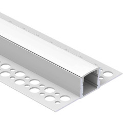 Architektonisches, flächenbündiges Aluminiumprofil für LED-Streifen, entwickelt für eine elegante und dezente Installation zwischen Trockenbau, Gips oder Fliesen. Sein Design ermöglicht kontinuierliche Lichtlinien ohne sichtbare Rahmen und verleiht jedem Raum ein minimalistisches und anspruchsvolles Finish. Die perforierten Flügel garantieren eine feste Haftung am Baumaterial. Ideal für moderne, blendfreie Beleuchtung. Inklusive 4 Endkappen.
