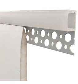 Architektonisches, flächenbündiges Aluminiumprofil für LED-Streifen, entwickelt für eine elegante und dezente Installation zwischen Trockenbau, Gips oder Fliesen. Sein Design ermöglicht kontinuierliche Lichtlinien ohne sichtbare Rahmen und verleiht jedem Raum ein minimalistisches und anspruchsvolles Finish. Die perforierten Flügel garantieren eine feste Haftung am Baumaterial. Ideal für moderne, blendfreie Beleuchtung. Inklusive 2 Endkappen.