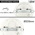 Haben Sie Probleme, weil das Loch zu groß oder zu klein ist, um das Downlight oder Ihre LED-Deckenleuchte zu installieren? Die Lösung! Mit dem neuen Modell der MOSS Leuchte mit 18W Leistung, EINSTELLBAREM DURCHSCHNITT (Lochdurchmesser von 50mm bis 180mm) und wählbarer Farbe, werden Sie keine Probleme mehr haben, sie zu installieren, da sie sich dank des Schiebesystems der Befestigung an den Durchmesser des Lochs anpasst. GENIESSEN SIE JETZT IHR DOWNLIGHT + DECKE + STEUERGERÄT + EINSTELLBAR!. 6 PRODUKTOPTIONEN IN NUR 1!