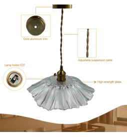 Die Kristall-Pendelleuchte für E27-Glühbirne ist eine elegante und vielseitige Option für jeden Innenraum. Ihr schlichtes, minimalistisches Design passt zu jedem Einrichtungsstil, von klassisch bis modern. Das Zubehör, wie die Fassung und der Sockel, ist bronzefarben.