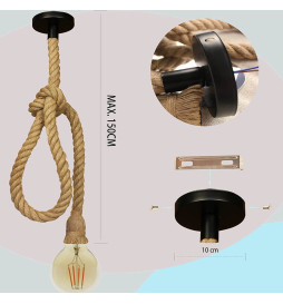 Hängende Seillampe aus Leinen für die Deckenmontage, E27-Fassung, kombinieren Sie sie mit unseren Vintage-Glühbirnen, um Retro-Atmosphären zu schaffen.