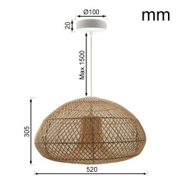 Hängeleuchte aus Rattan für LED E27. Verleihen Sie Ihrem Zuhause einen Hauch von Eleganz und Wärme mit dieser Hängeleuchte aus Rattan. Ihr natürliches und elegantes Design fügt sich perfekt in moderne und minimalistische Stile ein und schafft eine gemütliche und raffinierte Atmosphäre in jedem Raum. Ideal für diejenigen, die funktionale Beleuchtung mit einem einzigartigen dekorativen Akzent suchen. Verwandeln Sie Ihren Raum mit Stil und Licht!