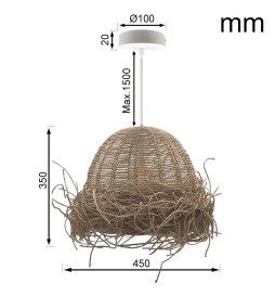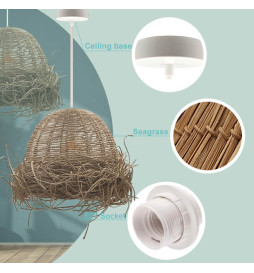 Hängeleuchte aus Seegrasfasern für LED E27. Verleihen Sie Ihrem Zuhause einen Hauch von Eleganz und Wärme mit dieser Hängeleuchte aus Seegrasfasern. Ihr natürliches und elegantes Design fügt sich perfekt in moderne und minimalistische Stile ein und schafft eine gemütliche und raffinierte Atmosphäre in jedem Raum. Ideal für diejenigen, die funktionale Beleuchtung mit einem einzigartigen dekorativen Akzent suchen. Verwandeln Sie Ihren Raum mit Stil und Licht!