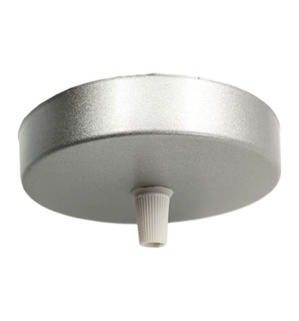 Deckenausleger, Wand- und Deckenrosette, für Pendel- und Wandleuchten. Hergestellt aus Aluminium. Besteht aus dem Sockel, einer hinteren Metallbrücke und zwei Schrauben für eine korrekte Befestigung. Er verfügt über eine Öffnung, die den Durchgang von dekorativen elektrischen Kabeln mit einem maximalen Querschnitt von 2x1,5 mm sowie von Gefangenen oder Kabelverschraubungen ermöglicht.