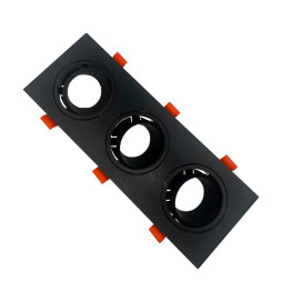 Der dreifacher schwarzer Rahmen für GU10 für GU10 und dichroitische LED-Module hat eine elegante Oberfläche, die sich perfekt in jede Inneneinrichtung einfügt und einen Hauch von Raffinesse verleiht. Dank seiner kompakten Größe und seines geringen Gewichts ist er zudem einfach zu installieren und zu handhaben.