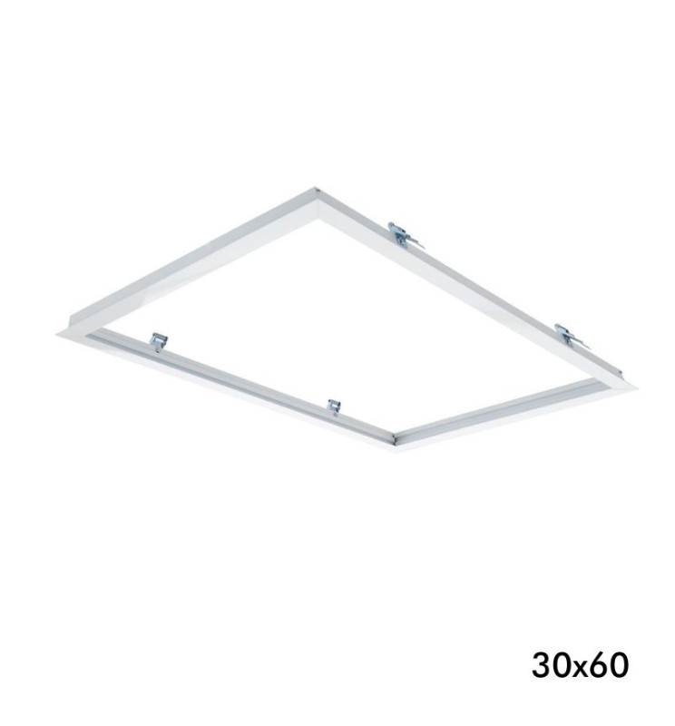 Unser Einbaurahmen wurde entwickelt, um die Möglichkeit zu bieten, 30x60 LED-Panels in Räumen zu installieren, die nicht über eine abnehmbare Decke verfügen, in der diese Art von LED-Beleuchtung normalerweise installiert wird.