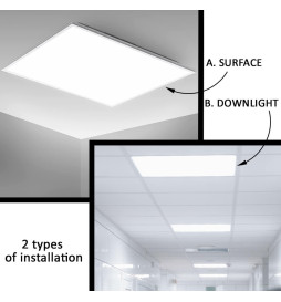 Die LED-Anzeige 60x60 40W CCT+ RGB kann sowohl aufgehängt als auch auf der Oberfläche montiert werden. Für die Deckenmontage gibt es zwei Installationsmöglichkeiten: