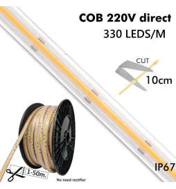 LED-Streifen COB 220V 10W/M | 330 LED/m | 1540Lm/M | FLIP-CHIP | 50m | IP65 | Schnitt alle 10 cm
