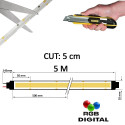 Entdecken Sie unseren innovativen 9W DIGITAL RGBIC COB LED-Streifen! Dieses neue Konzept bietet Ihnen eine noch nie dagewesene Kontrolle, da Sie jede LED des Streifens einzeln steuern können, was Ihnen unendliche Möglichkeiten bietet, personalisierte und lebendige Umgebungen zu schaffen. Mit 3W in Rot, 3W in Grün und 3W in Blau bietet Ihnen dieser Streifen ein komplettes Spektrum an lebendigen Farben, um Ihrer Kreativität freien Lauf zu lassen. Mit 360 Dioden pro Meter und einem Wirkungsgrad von 140 Lm/W bietet dieser Streifen eine helle und energiegeladene Beleuchtung. Er kann alle 5cm geschnitten werden. Dank der Schutzart IP20 ist er ideal für den Innenbereich geeignet, wo Sie lebendige Farben und eine einfache Installation genießen können. Er wird mit einem 3M-Klebestreifen geliefert, der eine einfache Befestigung auf jeder Oberfläche ermöglicht.