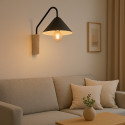LERUM Schwarze Led Wandleuchte mit Holzsockel für E27 Glühbirne