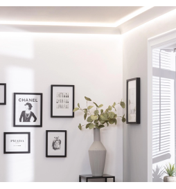 Die Polystyrol-Moulding ist speziell dafür entwickelt, Aluminiumprofile mit LED-Streifen zu integrieren und bietet eine dekorative Lösung, die jeden Raum durch indirekte und dekorative Beleuchtung verwandelt. Dieses Produkt ermöglicht es, spektakuläre Effekte in der Innendekoration zu schaffen, indem es nicht nur Licht, sondern auch Eleganz und Dynamik hinzufügt. Durch die Integration von Beleuchtungsprofilen im Inneren verwandelt diese Moulding Decken und Wände in wahre Kunstwerke und kombiniert lineare Formen mit einem sanften Lichtschein.