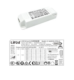 LIFUD DALI/PUSH dimmbarer Treiber für LED bis 30W, optimiere deine Leuchten mit diesem flimmerfreien Treiber, ideal für LED-Downlights, Panels und Deckenleuchten. Mit Eingang AC220–240V und regulierbarem Ausgang DC9–42V (400–750mA) bietet er eine stabile Leistung und ist dank seines ausgangsseitigen, steckerlosen Designs vielseitig einsetzbar. Perfekt für professionelle Installationen, die Qualität und Vielseitigkeit verlangen.