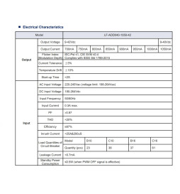 - Input: AC220-240V / Output: DC9-42V 700mA-1050mA