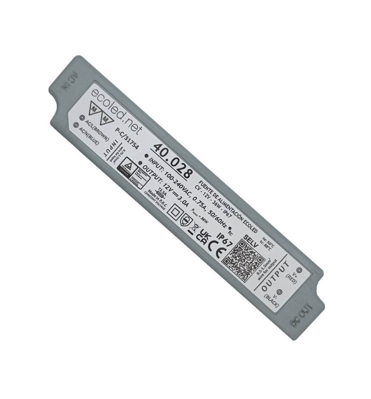 The 12V 36W professional power supply from ECOLED is a robust and secure solution for demanding applications. It provides advanced protection against short circuits, overloads, and overvoltages, with a compact and efficient design that ensures stable and reliable performance in any environment. Perfect for applications requiring high reliability and electrical safety.