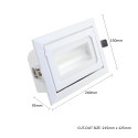 Rectangular 40W LED Downlight with dimmable LIFUD driver (TRIAC, 0–10V or DALI/PUSH). 3000K or 6000K, equipped with OSRAM Duris SMD2835 chip at 140 Lm/W, ideal for professional lighting. Thanks to its vertically adjustable design, it’s perfect for shops and commercial spaces where light needs to be directed toward products or specific areas. With dimming capability, you can easily adjust the light intensity based on the environment or specific needs. Save energy from the first use with efficient LED technology.