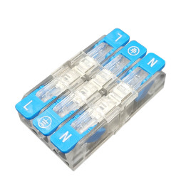 You want to save time and money: The quick connector 3 inputs - 3 Outputs - KV221-415 - for electrical cable is used for fast and safe connections in all types of lighting and also in temporary and permanent electrical installations. With these quick and safe connectors, you achieve great cost savings in assembly.