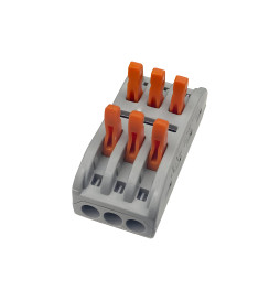 You want to save time and money: The quick connector 3 inputs - 3 Outputs - PCT-813 - for electrical cable is used for fast and safe connections in all types of lighting and also in temporary and permanent electrical installations. With these quick and safe connectors, you achieve great cost savings in assembly.