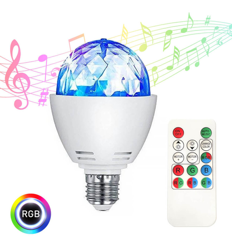 Light up your moments with a show of dazzling colors thanks to the revolutionary 3W E27 Disco Effect RGB LED Rotating Bulb! Turn any space into an oasis of light and color that stimulates your senses and immerses you in a festive and vibrant atmosphere. Don't miss this opportunity to elevate the lighting of your spaces to the next level.