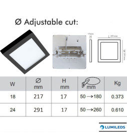 Do you have problems because the hole is too big or too small to install the downlight or your LED ceiling light? The solution! With the new model of MOSS Luminaire with 24W of power, ADJUSTABLE in CUTTING DIAMETER (Hole diameter from 50mm to 260mm) and selectable color, you will not have any problem to install it, because it adjusts to the diameter of the hole thanks to the sliding system of the fixture. ENJOY NOW YOUR DOWNLIGHT + CEILING + CCT + ADJUSTABLE!. 6 PRODUCT OPTIONS IN ONLY 1!