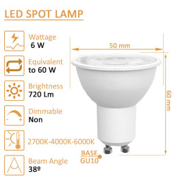 Our LED Bulb 220v with 2835 OSRAM Chip SMD diode and 6W GU10 socket is specially designed for uses where due to the height of the ceiling we need to concentrate the light beam and focus the light on the desired areas thanks to its 60º opening. The material it is made of is aluminium and PC.