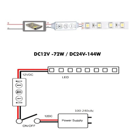Furthermore, its installation is quick and simple. Just connect your monochromatic LED strip to the controller and ensure it is properly powered by a 12V or 24V DC power supply. Once connected, you'll be ready to bring your ideas to life and dazzle everyone with your creativity.