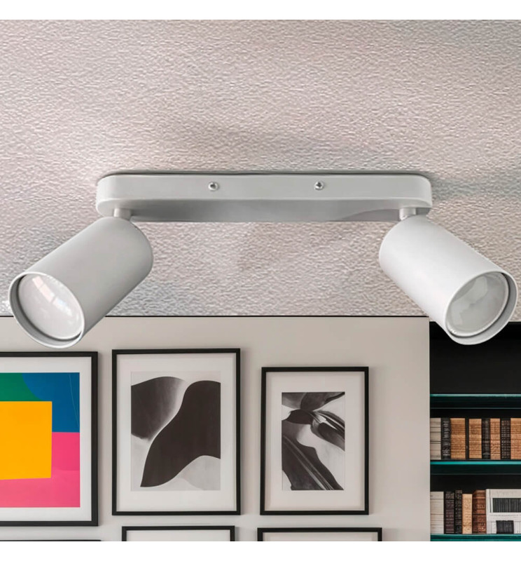 The adjustable ceiling spotlight for 2 GU10 bulb, made of aluminium, is an elegant and functional lighting solution designed to meet a wide range of needs in commercial, cultural, and professional settings. Crafted from high-quality aluminium, this spotlight combines durability and lightness with a minimalist design that blends seamlessly into any space.