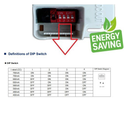 One of its key advantages is its multi-voltage output: it delivers a constant voltage within a 9 to 42V DC range, automatically adapting to the connected load. This means the driver can operate with different current settings (from 400 to 750 mA), making a single model suitable for various applications. Once powered, the system adjusts the output automatically and maintains a constant voltage within the specified range.