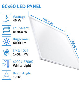 PACK 10 LED Panel 60x60 4000Lm | NEW SLIM FRAME | Philips Driver 40W | 5 Years Warranty