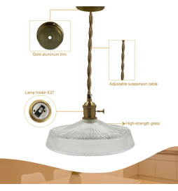The crystal pendant lamp for E27 bulb is an elegant and versatile choice for any interior space. Its simple, minimalist design fits any decor style, from classic to modern. Its accessories, such as the socket and trim are bronze in color.
