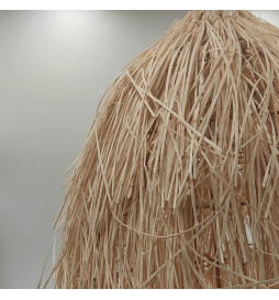 The lamp is made from rattan, a natural material composed of thin layers of climbing palms, typically from Asia, that are interwoven to form a unique and distinctive structure. This construction technique not only enhances its aesthetic appearance but also provides exceptional durability.