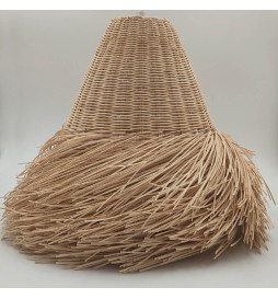 The lamp is made from rattan, a natural material composed of thin layers of climbing palms, typically from Asia, that are interwoven to form a unique and distinctive structure. This construction technique not only enhances its aesthetic appearance but also provides exceptional durability.