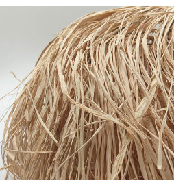The lamp is crafted from raphia, a natural fiber thread or cord from a palm species native to Africa and tropical Americas, woven to form a unique and distinctive structure. This construction technique not only enhances its aesthetic appearance but also provides exceptional durability.