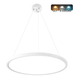 Discover the MOON LIGHT LED lamp, the perfect combination of functionality and design. With pendant or surface option Ø583mm, easily adjust the power (40W/44W/48W) and 3CCT light temperature (3000K/4000K/6000K) to suit your environment. Its matte white finish and minimalist style add a modern and sophisticated touch to any space, while the night light option creates a cozy atmosphere. Suspended with elegant adjustable steel cables from 0.5 to 1.2 meters, it adapts to any desired height. Ideal for those seeking design, versatility, and lighting comfort in a single product.